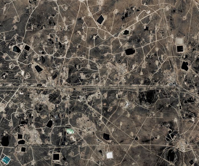 Durch den Wechsel zwischen Distanz und Nähe offenbaren sich in Engels Fotografien entweder kleinste Details oder es dominieren großflächige Muster. So werden Siedlungsstrukturen zu einem ornamentalen Gewebe aus verwobenen Linien, die Flachdächer unzähliger Gewächshäuser zu einem dichten, teppichartigen Mosaik. Die Grüns eines Golfkurses in einer nackten, felsigen Landschaft erinnern plötzlich an eine ausgestreckte Hand und die Ränder künstlich bewässerter Felder gehen für einen Moment als Muster von Pailletten auf einem dekorativen Stoff durch. Der „göttliche Blick“ von oben vermittelt eine Abstraktion in Linien und Flächen, eine Über-Realität, die man so nie sehen oder erleben kann.