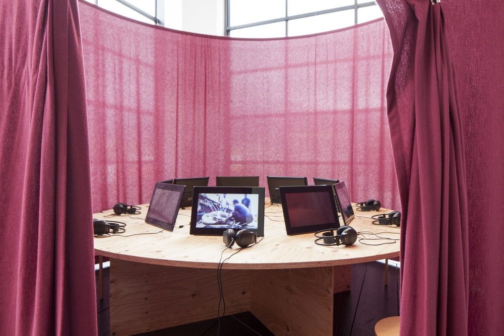 Fotoalbum zur Ausstellung "Harun Farocki, Antje Ehmann: Arbeitsverhältnisse"
