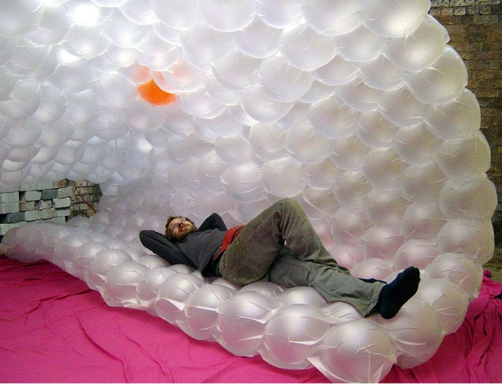 „Blow Job“ nennen Nina Mair und Horst Philipp ihre Installation, die gleichzeitig ein technologisch vielseitig verwendbares Architekturkonzept darstellt. Die im Grundriss vier mal neun Meter messende pneumatische Konstruktion lässt sich in frei bestimmbare Formen bringen und kann eine Höhe von bis zu drei Metern erreichen. Pneumatische Kissen in Kugelform werden prall mit Luft gefüllt und durch das Verschieben zueinander vom Benutzer in eine individuell bestimmbare Form gebracht. In der Membran, in der sich die Pneus befinden, wird ein Vakuum erzeugt, das die Kissen in ihrer Position hält und damit für Stabilität sorgt.