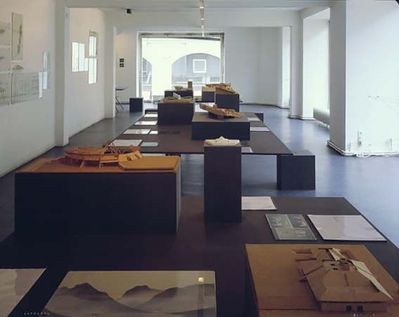 Die beiden in Wien lebenden und arbeitenden Architekten zeigen eine Auswahl ihrer Projekte. Auf einer eigens angefertigten Wand, die den Galerieraum längsseitig in zwei Hälften teilt, werden Plots ihrer Projekte gezeigt.