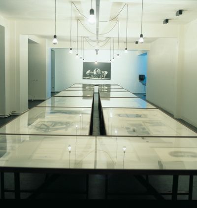 In der Reihe “International Architects in Tyrol“ (bisher: 1998 Dominique Perrault, 2000 Ben van Berkel) zeigte Zaha Hadid, Gewinnerin des Wettbewerbs für den Umbau der Sprungschanze Bergisel in Innsbruck, in ihrer Ausstellung Arbeiten der letzten Jahre.