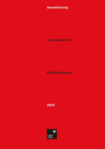 Eine Dokumentation sämtlicher bei der „Auszeichnung des Landes Tirol für Neues Bauen 2022“ prämierter Bauten. Innsbruck 2022, 24 Seiten, zahlreiche Farbabbildungen, 21 x 29,7 cm, gratis (Portospesen)