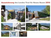 In der Broschüre „Auszeichnung des Landes Tirol für Neues Bauen 2016“ werden die ausgezeichneten Bauten umfassend vorgestellt und von den Jurymitgliedern kommentiert, die nominierten Projekte gezeigt sowie sämtliche Einreichungen genannt.