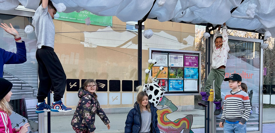 Steckt im Warten kreatives Potenzial? In Zusammenarbeit mit Künstler:innen und Architekt:innen gestalten wir Haltestellen mit kurzweiliger Aufenthaltsqualität, lernen die unterschiedlichen Orte und ihre Besonderheiten mit all unseren Sinnen kennen und treten in gestalterische Kommunikation damit.
