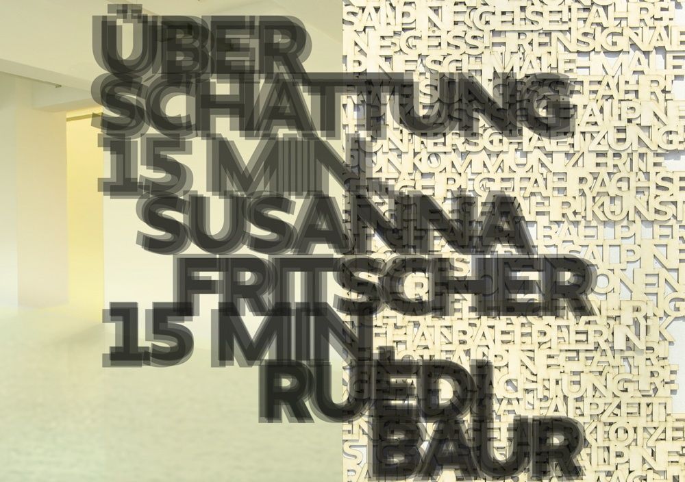 "Überschattung" ist die erste gemeinsame Ausstellung der in Paris lebenden Künstlerin Susanna Fritscher und des Grafikers und Designers Ruedi Baur, der mit dem von ihm begründeten Atelier "Intégral Ruedi Baur" zu den weltweit prägenden Unternehmen im Bereich Erscheinungsbilder, Leit- und Orientierungssysteme zählt.