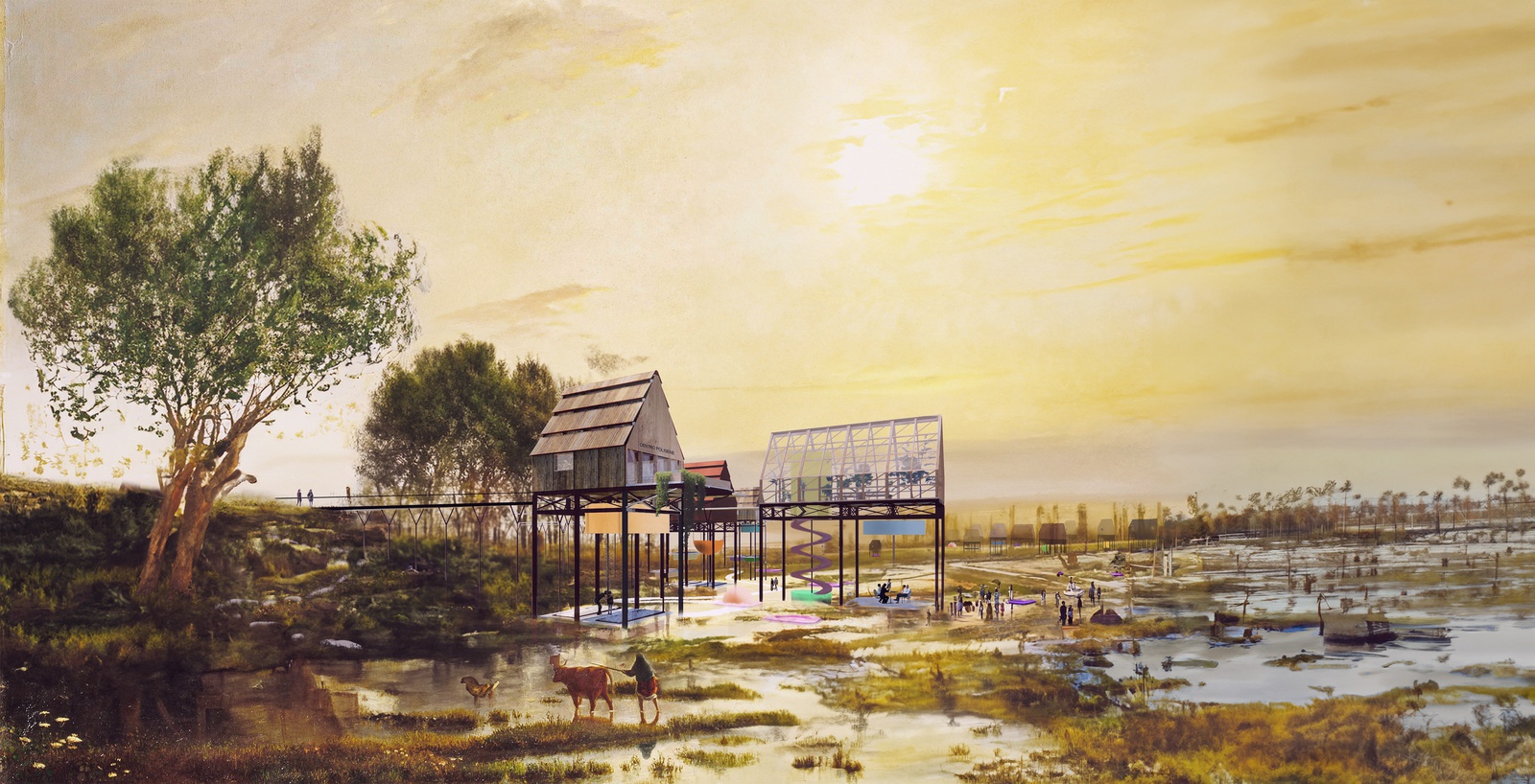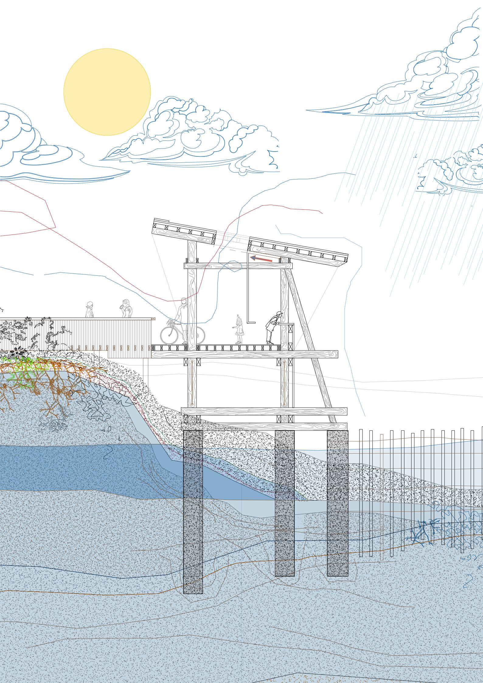 Heatwaves, storms and floods are making the effects of climate change more tangible all over the world. In the spring of 2023 and 2024, the HDA invited young European architects to address the challenges posed by these extreme weather conditions. The aim was to come up with innovative ideas to make cities, regions and buildings more resilient to heavy rain, flooding and extreme heat. The exhibition “Bioclimatic Actions” showcases the results of two workshops with young European architects, which were part of the HDA research laboratory funded by the EU Creative Programme.