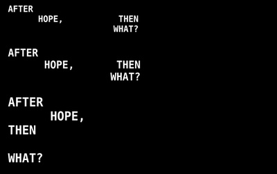 Die Arbeit A QUESTION IS A SENTENCE DESIGNED TO ELICIT A RESPONSE. TODAY, WE WANT TO KNOW WHAT THE SLOPPY FUTURE HOLDS der Künstlerin Kameelah Janan Rasheed ist eine Videoprojektion subtiler und dabei dennoch provokativer Fragen, die sowohl aus den großen Ausstellungsfenstern des HDA sowie über die Leinwand des Forum Stadtpark in das Grazer Stadtbild projiziert werden. Die Projektionen formulieren, vergrößern und verstärken dabei scheinbar einfache Fragen, die die Instabilitäten und Ängste vor prekären Zukünften artikulieren.