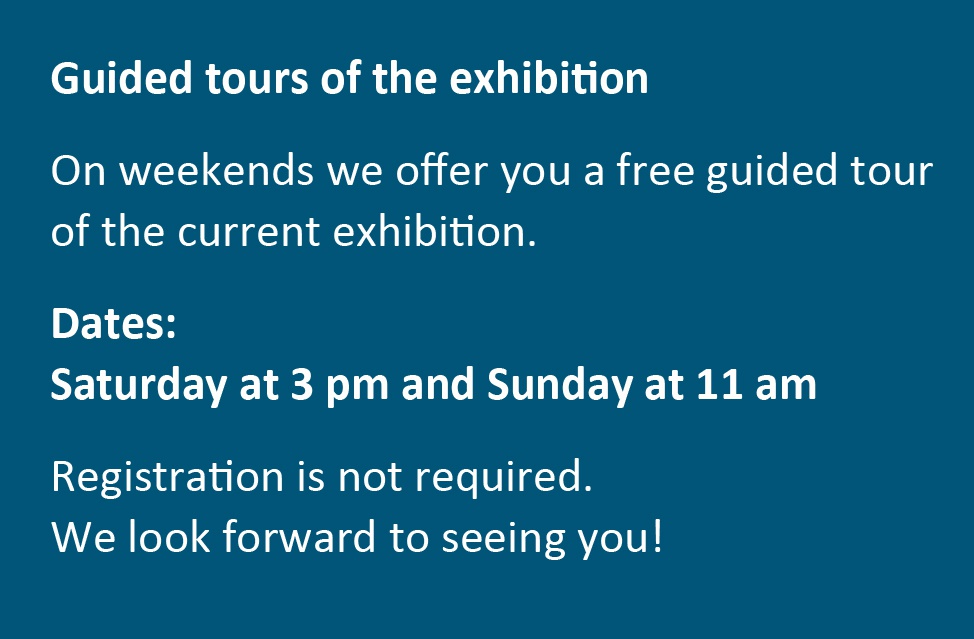Free guided tours of the exhibition are offered each weekend, at 3 p.m. on Saturdays and 11 a.m. on Sundays. Registration is not required.