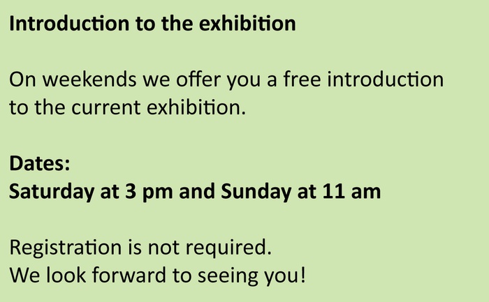 Free introductions to the exhibition: Saturdays, 3 p.m. & Sundays, 11 a.m.