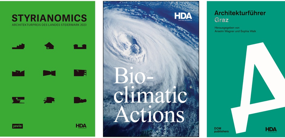 Exhibition catalogues, monographs, readers, brochures, the Graz Architecture Guide, the books designed on the occasion of the Architecture Prize of the Province of Styria and other individual publications.