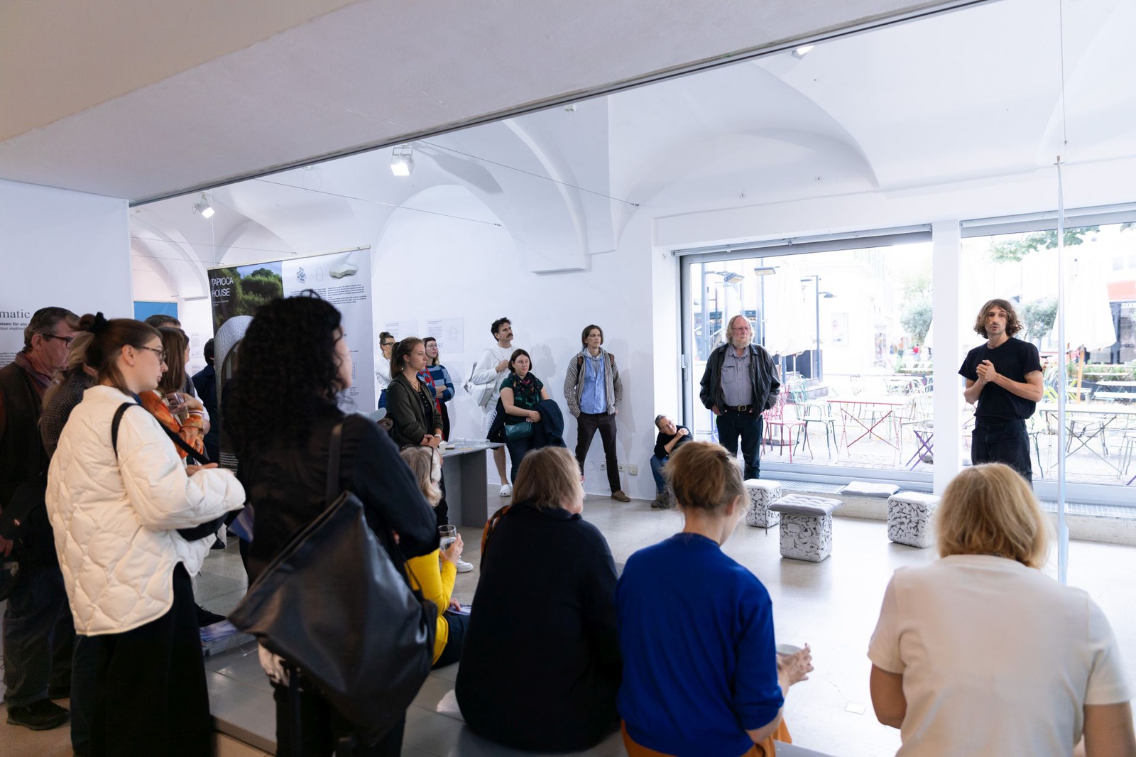 DiskussionIm Rahmen des steirischerherbst'24 findet ein Rundgang durch die Ausstellungen der Partnerinstitutionen mit Führungen und Gesprächen statt. Den Auftakt deses Rundgangs bilden die „Bioclimatic Talks“ im HDA, begleitet von der Ausstellung "Bioclimatic Actions. Resiliente Bauweisen für ein sich wandelndes Klima". Hier diskutieren jene Architekt:innen, die bei den LINA-Workshops teilgenommen haben über Bioklima und nachhaltiges Bauen.