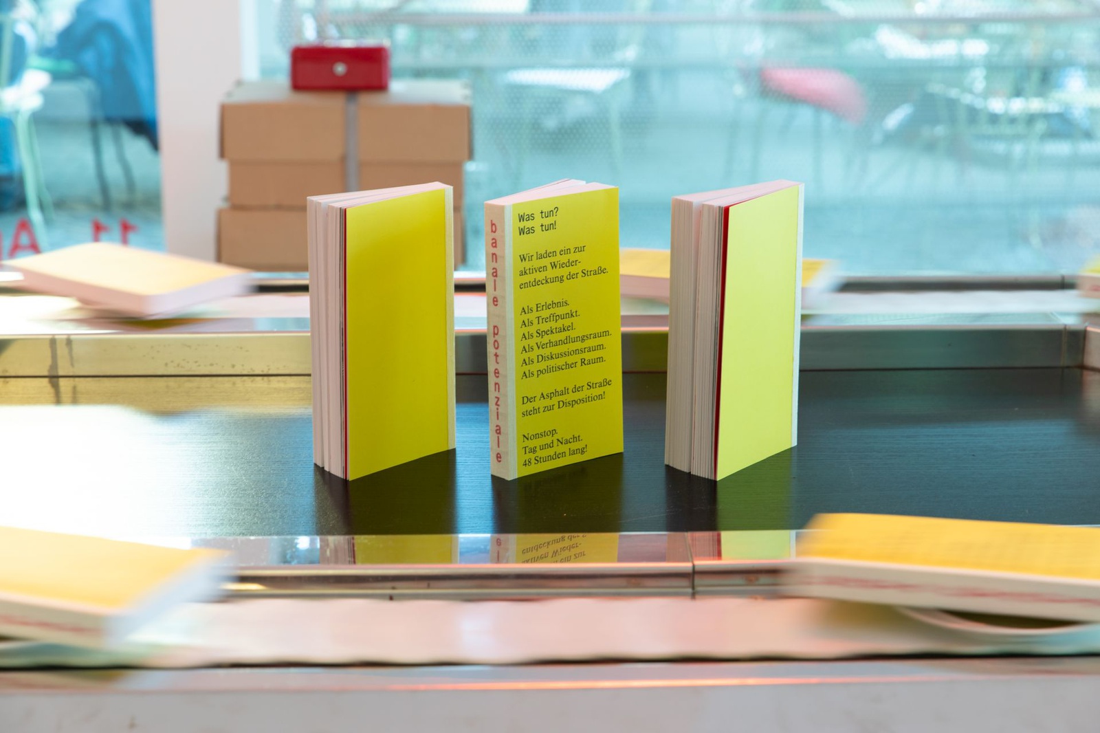 BuchpräsentationZur banale potenziale erscheint eine Publikation, die zum einen eine Retrospektive der 48-stündigen Auseinandersetzung mit dem öffentlichen Raum bietet und zum anderen zentrale Themen der Ausstellungen und Interventionen aufgreift und weiterführt. Sie versammelt Texte sowie fotografische und künstlerische Arbeiten, die sich aus unterschiedlichen Blickwinkeln den behandelten Fragestellungen annähern. Entstanden ist ein Reader, der als Orientierungshilfe, als Handlungsgrundlage und als Ausgangspunkt für interdisziplinäre Vernetzungen konzipiert ist. Die Publikation wird im Rahmen einer Book Launch Party mit anschließendem Fest präsentiert – eingebettet in die Ausstellung banale potenziale – Labor zur Erforschung der Straße im HDA.
