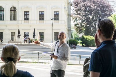 FührungDer Rundgang führt Sie zu Universitätsbauten aus drei Jahrhunderten, die nicht nur unterschiedlichste architektonische Sprachen aufweisen und vereinen, sondern auch widerspiegeln, wie sich das Verständnis von Bildungsräumen und die Anforderungen an sie im Laufe der Zeit verändert haben. Die besuchten Gebäude der TU, Kunstuni und Universität Graz zeigen, wie sich der Humboldt’sche Raum des zurückgezogenen „Für-sich-Lernens“ zu einem Kommunikationsraum entwickelt hat und wie sich die Universitäten und ihre Räume zunehmend für die Stadtgesellschaft öffnen und zu multifunktionalen Orten werden. Von Umbauten denkmalgeschützter Gebäude der Moderne über Einbauten in historische Bauten, über einen Baldachin über ehemaligen Stallungen und einen Twist aus Beton, über die Grazer Schule und den radikalen Umbau einer historischen Bibliothek führt der Spaziergang Sie schlussendlich zum Entwurf für einen der größten Universitätsbauten Österreichs, der ab 2024 an Stelle der heute nicht mehr genutzten Vorklinik realisiert wird.