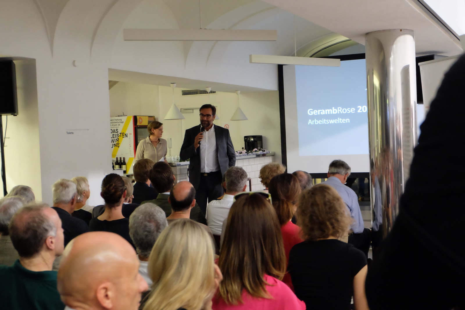 AusstellungDie GerambRose wird vom Verein BauKultur Steiermark als Würdigung für Leistungen verliehen, die im Sinne der Erhaltung oder Schaffung qualitätsvoller Baukultur erbracht wurden, wobei die gemeinsame Arbeit von Bauherrschaft, Planer oder die Planerin, Ausführenden im Mittelpunkt des Preises steht. Die GerambRose 2016 widmet sich dem Thema „Arbeitswelten".
