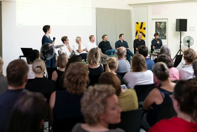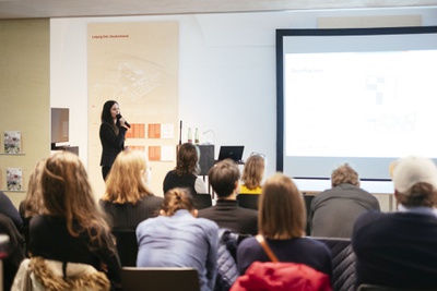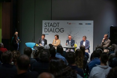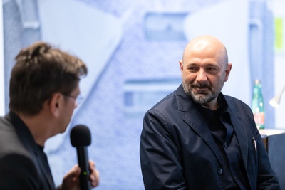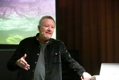 Vor der Eröffnung der Ausstellung "Speculations – Peter Cook, London" hielt Sir Peter Cook, einer der Architekten des Kunsthauses Graz, am 22.10.2023 einen Vortrag zu seiner Arbeit. || Before the opening of the exhibition "Speculations - Peter Cook, London", Sir Peter Cook, one of the architects of the Kunsthaus Graz, gave a lecture on his work on 22 October 2023.