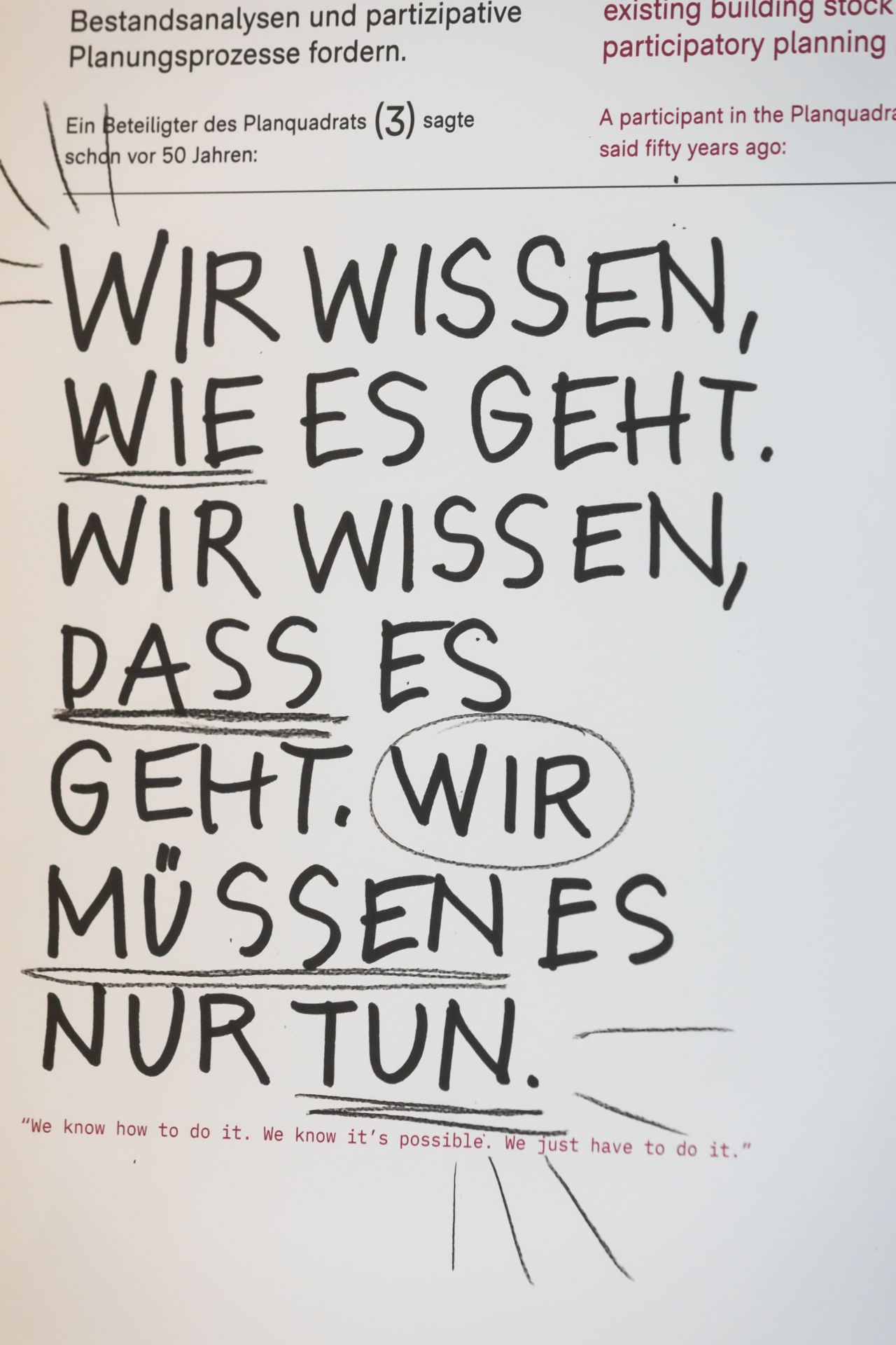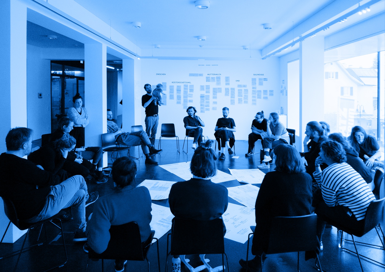 Die Ausstellung „Zwischen Kostenschätzung, Muttermilch und Bauwende“ versammelt die drängendsten Fragen, Positionen und Forderungen junger Architekt:innen in Österreich. Die Herausforderungen sind groß: die Bauwende aktiv mitgestalten, gerechtere Arbeitsstrukturen schaffen und die eigenen Handlungsspielräume durch veränderte Rahmenbedingungen vergrößern. Gezeigt wird ein kollektiv kuratiertes Mapping, das gemeinsam mit 60 Architekt:innen erarbeitet wurde und den Auftakt zu einer offenen Diskussion bildet. Die Installation lädt zum Austausch ein, stellt Fragen und soll durch Kommentare der Besucher:innen weiter wachsen.