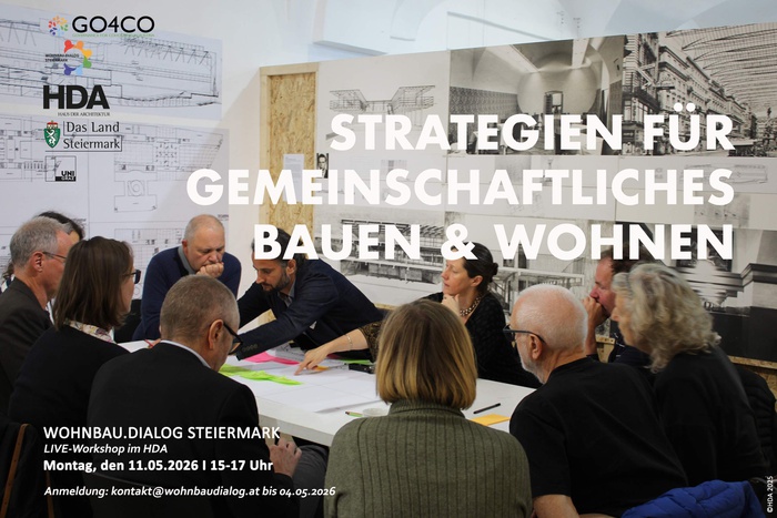 WorkshopDer 14. WOHNBAU.DIALOG STEIERMARK beschäftigt sich mit den gesellschaftspolitischen Rahmenbedingungen von gemeinschaftlichem Bauen und Wohnen in Österreich. Zunächst werden in drei Impulsvorträgen Ergebnisse aus einem dreijährigen Forschungsprojekt präsentiert. Dabei werden die Entwicklung und Verbreitung gemeinschaftlicher Wohnprojekte, sowie Potentiale für deren Umsetzung und Maßnahmen zu ihrer Unterstützung thematisiert. Diese Aspekte werden im anschließenden Workshopteil im Austausch zwischen Verwaltung, Politik, Planung, Forschung, Projektentwicklung, Baugruppeninteressierten und allen, die sich mit neuen Wohnformen beschäftigen, diskutiert.