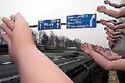 Winkende Hände erwarten die Gäste der Kulturhauptstadt Graz. Mit dem Projekt an der Autobahneinfahrt Graz West nimmt das Team [x architekten], Peter Reitmayr und Wolfgang Haas auf eine Geste Bezug, die das Moment des Ankommens thematisiert. Zugleich spricht es damit aber auch die Entpersonalisierung an, von der die mobile Gesellschaft zunehmend geprägt wird.
