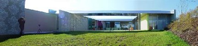 Die Aufgabe war, an eine bestehende Büro/Werkhalle zur Produktion von Fenstern und Türen einen Ausstellungspavillon anzubauen. Hier können die Produkte der Firma präsentiert und verkauft werden. Gleichzeitig soll durch den Zubau eine neue, attraktive Büroeingangssituation geschaffen werden.