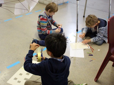 In Workshops lernen Kinder, was Architektur ist, wie man Ideen als Pläne zu Papier bringt und als Modell baut.