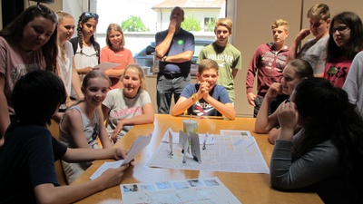 An einem gemeinsamen Vormittag im Architektur Haus Kärnten mit der Bildungs- und Berufsorientierung Kärnten werden die SchülerInnen der 7. Und 8. Schulstufe durch Wahrnehmungsübungen und Grundlagen der Architektur und Baukultur vertraut gemacht. Ziel ist es ein bewusstes Erkennen und Begreifen von Elementen, Materialien und den Prozessen in einem Stadtraum wie Klagenfurt aufzuzeigen und darüber hinaus den eigenen Lebensraum zukunftsorientiert mitzugestalten. Mit speziellen Arbeitsaufträgen werden die SchülerInnen zu Architekten, Raum- und Stadtplanern und erkunden dabei die Klagenfurter Innenstadt. Ausgestattet mit Fotoapparaten, Stadtplan und Zeichenblöcken wird die Erkundungstour dokumentiert. Ihre Entdeckungen werden mit Fotos festgehalten und das Erlebte und Erforschte wird den anderen Gruppen in einer Abschlusspräsentation vorgestellt. Sie schlüpfen in die Rollen der jeweiligen Berufe und schildern aus ihrer Sicht was sie wie und warum verändern würden.
