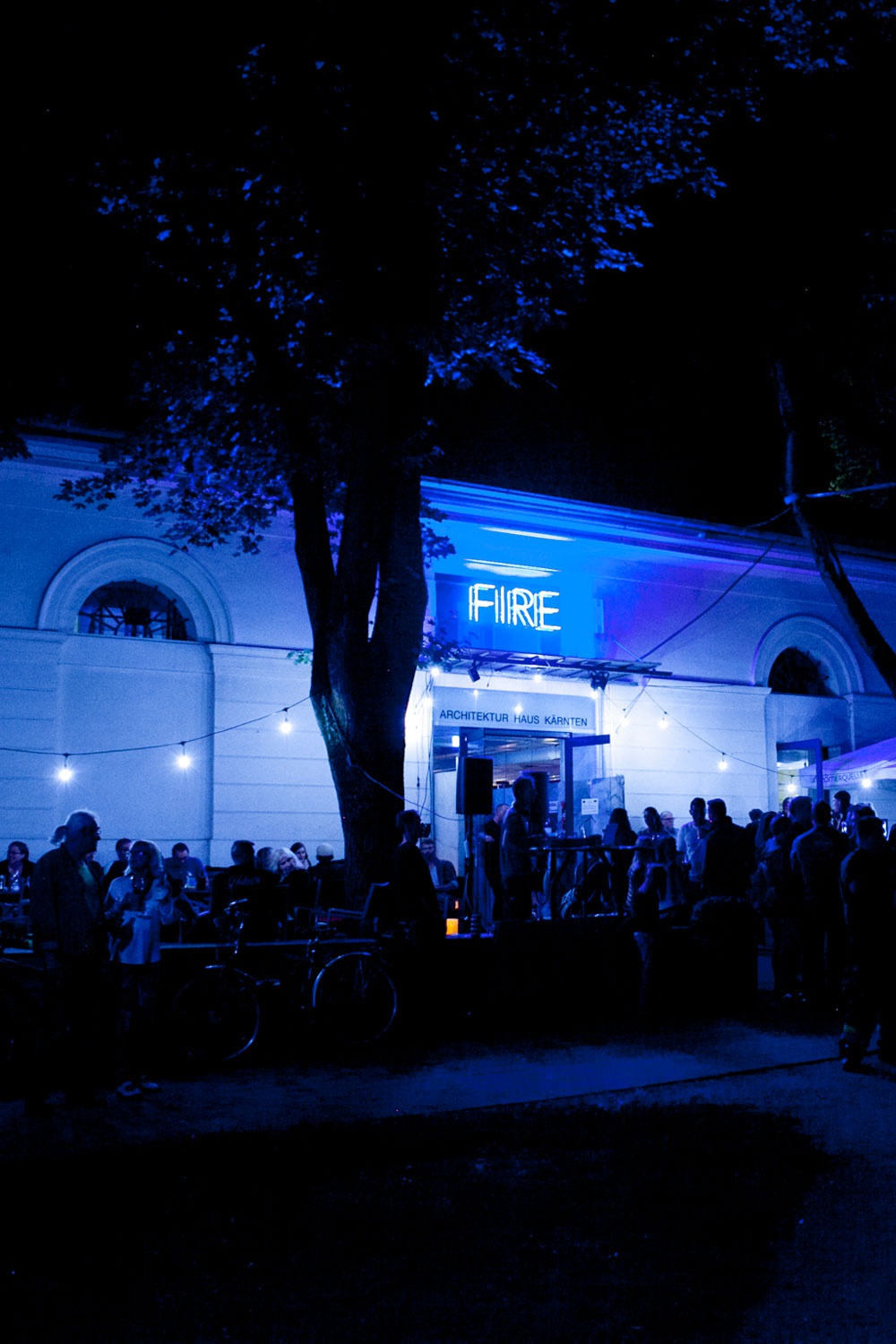 Am Abend wurde gemeinsam mit der Stadtgalerie Klagenfurt das Highlight des Tages eröffnet. Die Lichtinstallation FIRE/WATER der Künstlerin Katharina Gruzei – eine brennende Feuerlinie im öffentlichen Raum.