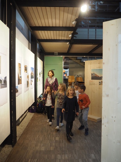 Im Rahmen der Ausstellung zum Holzbaupreis Kärnten veranstaltete DI Astrid Meyer-Hainisch (ARCHITEKTUR_SPIEL_RAUM) am 30. Oktober 2019 einen Architekturworkshop mit der Mäuseklasse der PVS Klagenfurt. Bei der Einführung in das Thema wurde Holz als Sauerstofflieferant und nachwachsender Rohstoff mit den 24 Kindern visualisiert und dessen vielseitige Verwendung als Baustoff im Architektur Haus erkundet. Die
