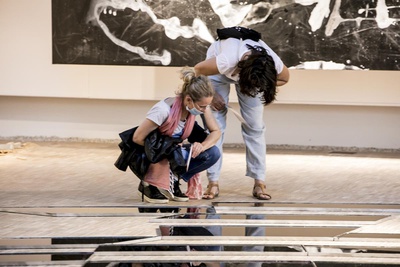 Hosenberg und Struger nähren sich dem Faktor Zeit auf malerischem und skulpturalem Wege an. In ihren Arbeiten thematisieren sie Vorgänge des Verschleißes von Oberflächen, wie Sedimentation und Abrasion. Dabei räumen die KünstlerInnen dem Abwarten, wie auch dem Zurücknehmen einen hohen Stellenwert ein. Die Kunstproduktion wird dabei zum Teil an externe Einflussnehmende ausgelagert. So gibt Hosenberg den Raum frei für Tanzende, die durch ihre Bewegung Spuren auf seinen Bildträgern hinterlassen. Struger ihrerseits gibt den Fertigstellungsprozess ihrer „Floor Stills“ an elementare Parameter wie Schwerkraft und Temperatur ab. Im offnen Ausstellungsraum vom Architektur Haus Kärnten treffen diese beiden konträren Herangehensweisen auf zwei Stockwerken aufeinander.