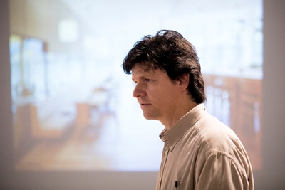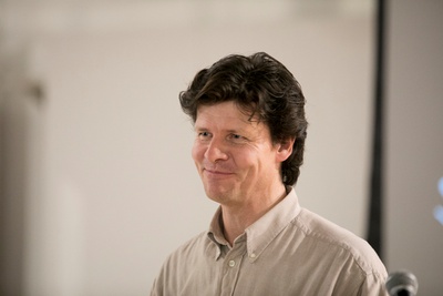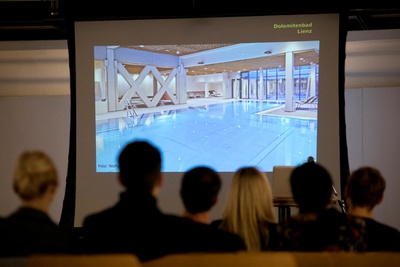 Hans Peter Machné erzählt in seinem Vortrag über Herausforderungen im Vorfeld und Erfahrungen bei der Sanierung des Dolomitenbades in Lienz.