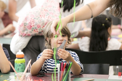 Workshop Kinder - Es fliegt, es fliegt ein Überflieger! Kinder bauen Drachen zum Mitnehmen nach einer Vorlage der Drachenbau- Künstlerin Anna Rubin.