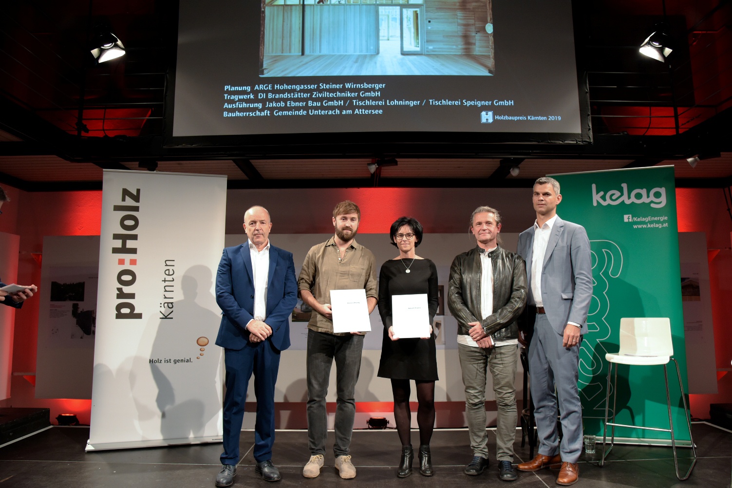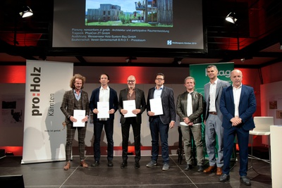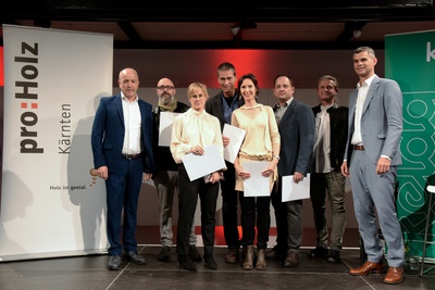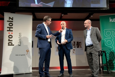 Rund 300 am Holzbau Interessierte kamen in das Architektur Haus Kärnten in Klagenfurt, um dabei zu sein, wenn die Preisträger bekannt gegeben werden. Die Juroren, Architekt Raimund Wulz, Tragwerksplaner Conrad Brinkmeier und Holzbaumeister Karl Niedermayer hatten die Preisträger aus insgesamt 89 Einreichungen gekürt. Je einen Holzbaupreis erhielten die Erweiterung und Sanierung der HBLA Pitzelstätten sowie die „Häuser im Wald“ auf der Turrach. Zwei Einfamilienhäuser wurden mit einer Auszeichnung bedacht und weitere Bauten, darunter eine Radbrücke über die Möll und eine Initiative für Möbeldesign, wurden mit einer Anerkennung ausgezeichnet.