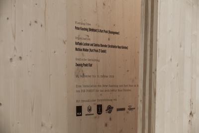 Eine raumgreifende Holz-Installation von Peter Kaschnig und Kurt Pock vor dem Architektur Haus Kärnten zieht interessierte vom Außen- in den Innenraum und lässt neue Blickwinkel zu. Holz wird zum Ausstellungsstück und zeigt was es kann. Zur Langen Nacht der Museen wird zum Außenraum auch der Innenraum bespielt und ein Kinderworkshop lädt die BesucherInnen ein kreativ zu werden.