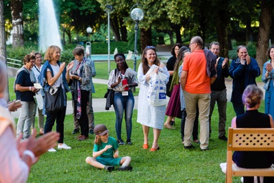 Eigens für dieLange Nacht/Dolga noč haben sich Kollektive aus unterschiedlichen Kunstsparten gebildet und speziell für diesen Abend Performances kreiert. Diese werden zeitverschoben und mehrmals hintereinander aufgeführt – so kann das Publikum entlang einer »Kunstmeile« in der Klagenfurter Innenstadt flanieren.
