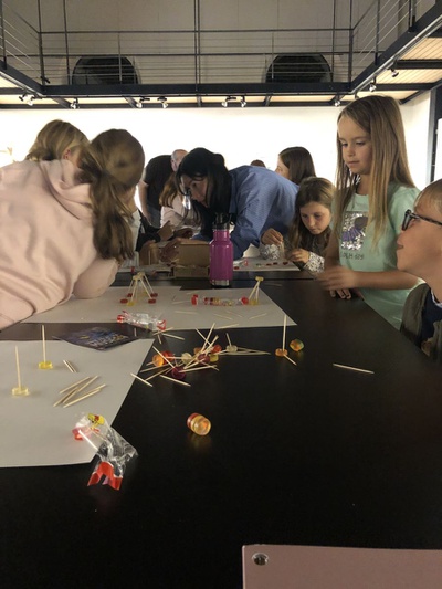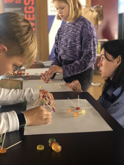 Stabtragwerke sind kompliziert und technisch? Stimmt, wenn man sich als Holzbauer:in intensiv damit beschäftigt. Dass es auch ganz einfach geht, zeigte dieser Workshop: Kinder, Jugendliche und Junggebliebene konnten sich mit Stäbchen und Gummifrüchten an der Konstruktion von Brücken und Türmen versuchen. Wenn die Tragwerke nicht hielten, wurden sie einfach vernascht.