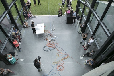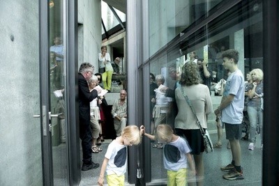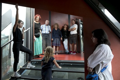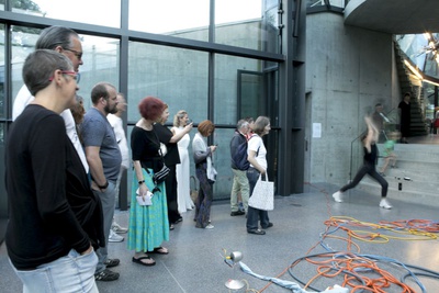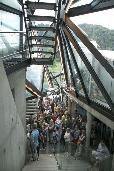 Aldo Giannotti und Karin Pauer bieten eine performative Hausführung an, welche sich auf den 30-jährigen Entstehungsprozess der Gebäude-Skulptur konzentriert. Basierend auf Erzählungen über Herausforderungen, Misserfolge, Hürden und Kämpfe, die mit der Realisierung des Mammutprojektes einhergingen, wird eine Geschichte konstruiert, durch die das Gebäude aus alternativen Perspektiven erlebt werden kann.