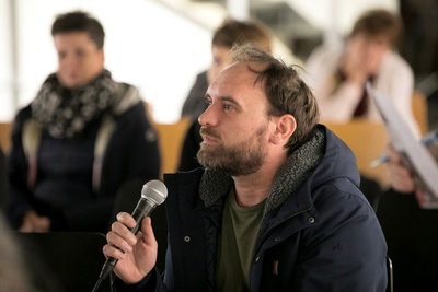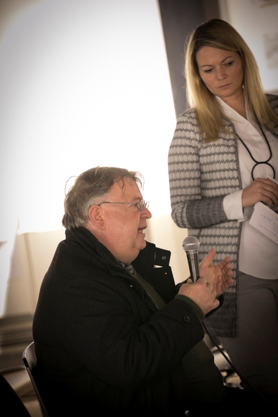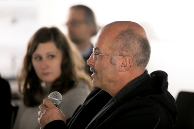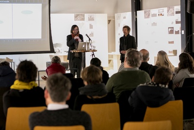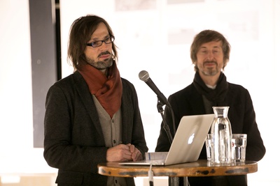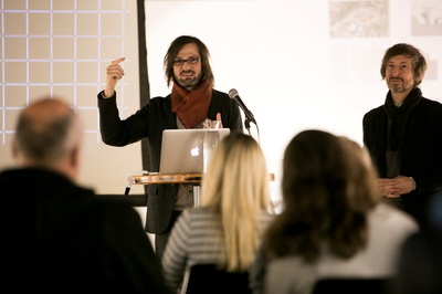 Peter Mörtenböck und Helge Mooshammer gaben Einblick in die Thematik des österreichischen Beitrags – Plattform Urbanismus – und Ausblick auf das Ausstellungsprogramm im österreichischen Pavillon.