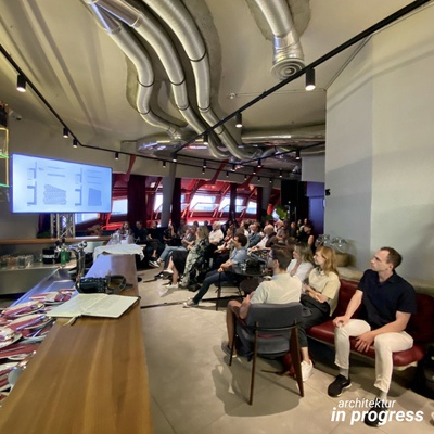 Der Vortrag wurde in Kooperation mit architektur in progress organisiert. Im ehemaligen Gebäude der Z-Sparkasse mit der markanten, biomorphen Metallfassade, welche von Günther Domenig 1975-1979 in der Favoritenstraße 118 realisiert wurde und als wichtigster Bau der frühen Phase der „Grazer Schule“ 2005 unter Denkmalschutz gestellt wurde.