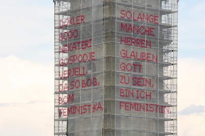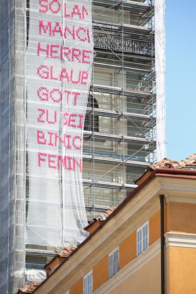 Rollenbilder verschwinden nicht von heute auf morgen und Machtstrukturen lösen sich nicht von allein auf – zu beidem gehört eine gehörige Portion Reflexion, Mut, Vertrauen und Bereitschaft zur Veränderung. Gerade in schwierigen Zeiten brauchen wir Kunst im öffentlichen Raum, die uns Kraft gibt, um mutig zu sein. Die INS FREIE Intervention findet in beiden Kärntner Landesprachen statt und regt bis in den Herbst hinein Einheimische wie Tourist*innen zu Diskussion und Begegnung an.