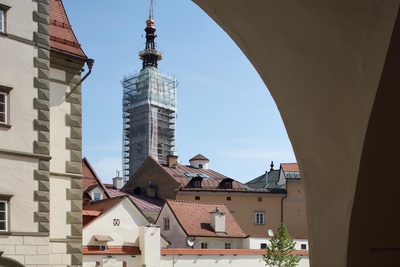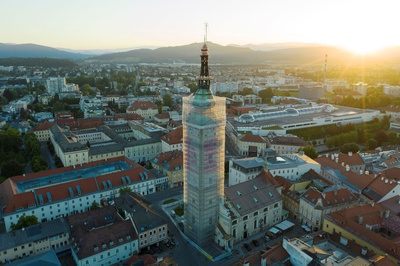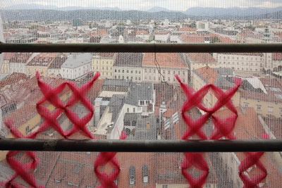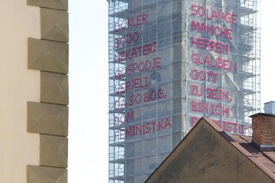 2021 lädt INS FREIE Katharina Cibulka und das „Solange…“ Projekt zu einer Intervention nach Klagenfurt ein. An einer Baustelle über den Dächern von Klagenfurt wird ein Solange… Satz angebracht und bietet Anlass für Diskussionen rund um Gleichberechtigung.