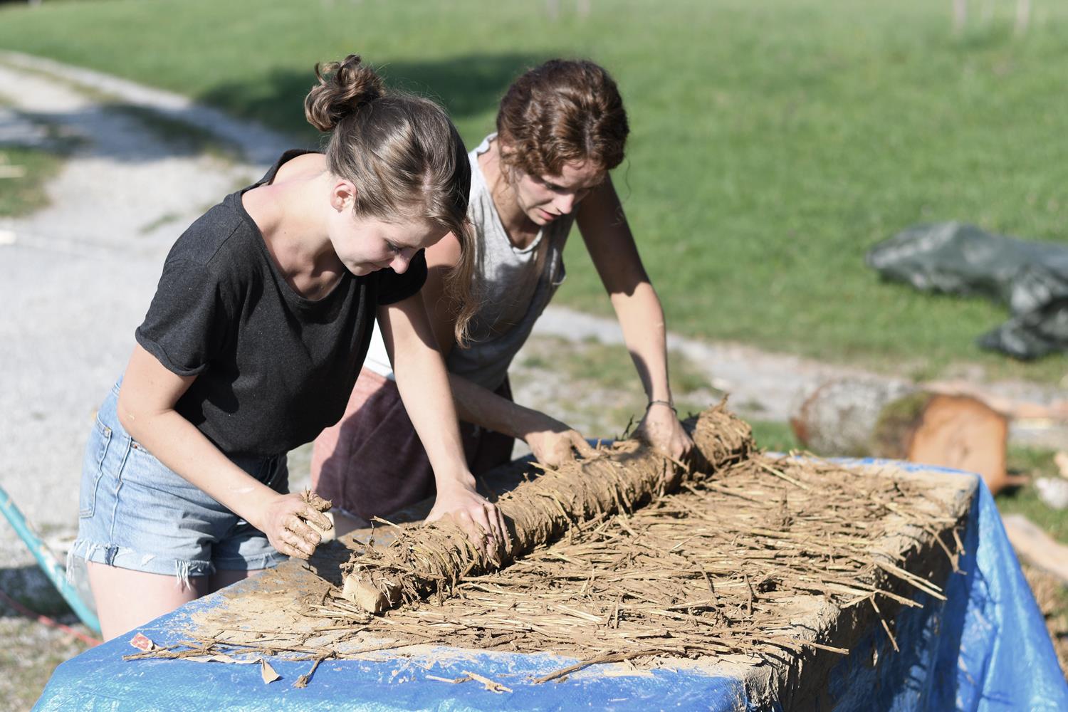 Aus der Betrachtung ursprünglicher, traditioneller Bauweisen kommt die Erkenntnis, den Baustoff Lehm als „Füllmaterial“ zu verstehen und ihn in Kombination mit einer Tragstruktur aus Holz zu verarbeiten. Die weitere Entscheidung den Lehm in Form von Lehmwickel als Ausfachung zu benutzen, beruht auf der Tatsache, dass diese besonders einfach zu handhaben sind und sich daher bestens für einen Selbstbau eignen. Die biologisch positiven Eigenschaften des Lehms erlauben es, ihn mit bloßen Händen zu verarbeiten. Außerdem kann der Lehmwickel mit minimalem Einsatz von Werkzeugen leicht von 1-2 Personen in Tischhöhe als Module vorgefertigt und später verbaut werden.