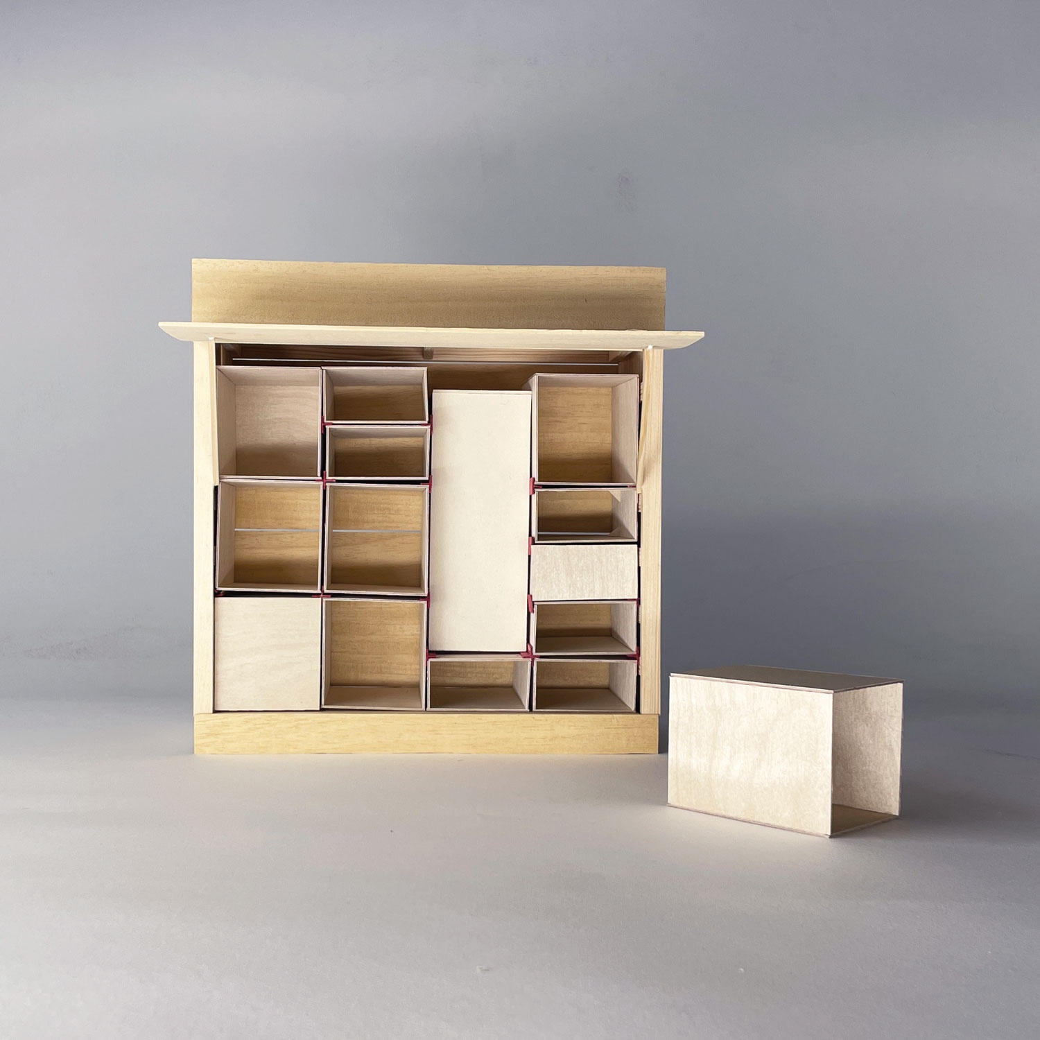 Das Team der TU Wien entschied sich bewusst gegen einen begehbaren Raum und für eine Struktur, die leicht auf- und abbaubar ist und sowohl als zweiseitig bedienbares Regal im öffentlichen Raum als auch für andere Nutzungen verwendet werden kann. Die Boxen, die gerade nicht im Regal benötigt werden, können als Sitzmöbel im Außenraum genutzt werden und bieten zusätzlich einen attraktiven Aufenthaltsort für die Menschen in der Umgebung.