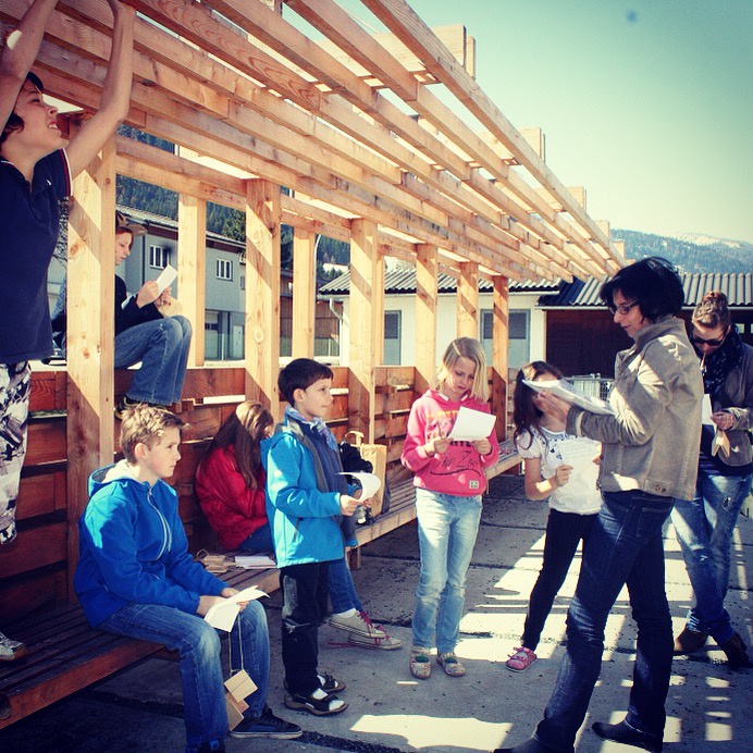 Der Architektur-Spiel-Raum-Kärnten versucht unseren Kleinen spielerisch und kreativ das Bauen nahezubringen damit sie ihr Wohnumfeld in Zukunft besser wahrnehmen, und auch formulieren lernen was sie dort haben wollen und was eben nicht. Klingt anstrengend, mach aber irrsinnigen Spaß!