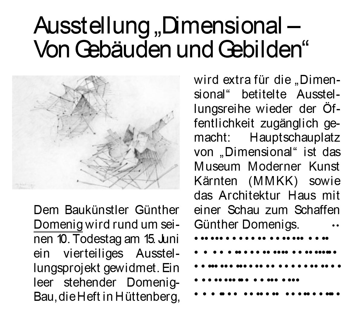 Kleine Zeitung: "Ausstellung: Dimensional – Von Gebäuden und Gebilden"