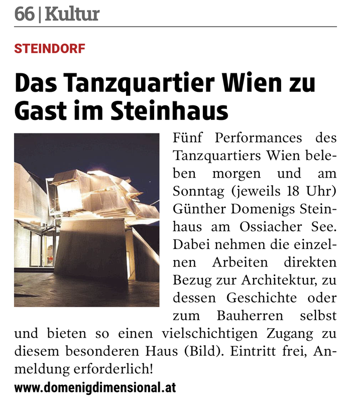 Kleine Zeitung: "Das Tanzquartier Wien zu Gast im Steinhaus"
