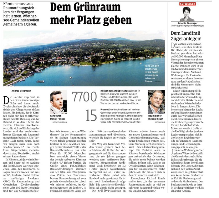 Kleine Zeitung: Dem Grünraum mehr Platz geben
