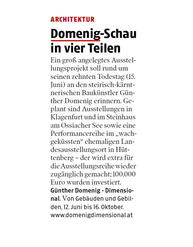 Kleine Zeitung: "Domenig-Schau in vier Teilen"