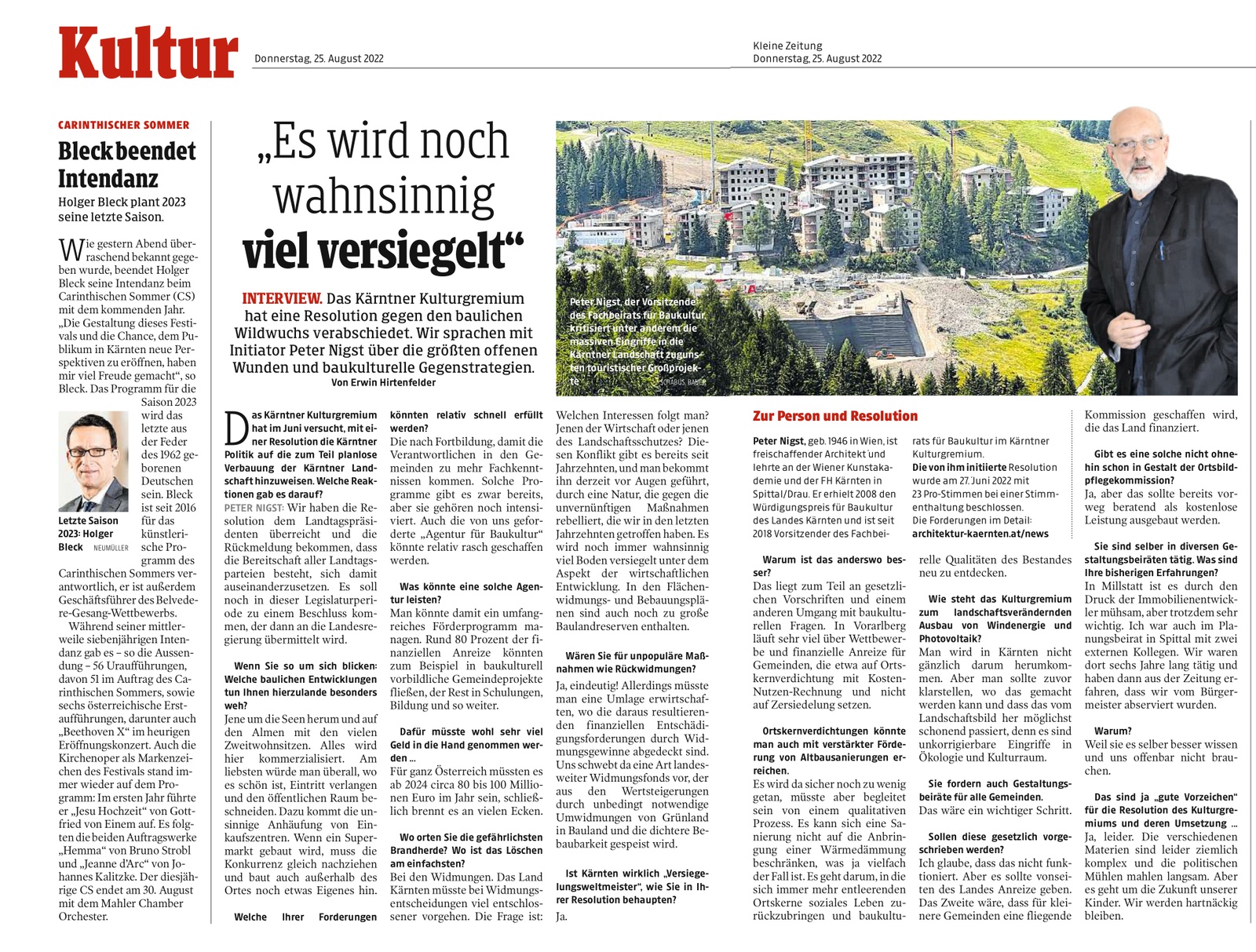 Das Kärntner Kulturgremium hat eine Resolution gegen den baulichen Wildwuchs verabschiedet. Wir sprachen mit Initiator Peter Nigst über die größten offenen Wunden und baukulturelle Gegenstrategien.
