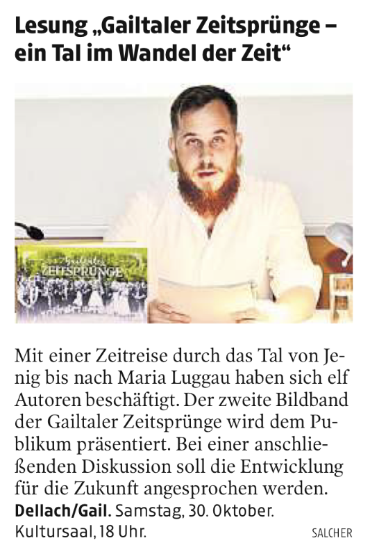 Kleine Zeitung:"Lesung: Gailtaler Zeitsprünge - ein Tal im Wandel der Zeit"