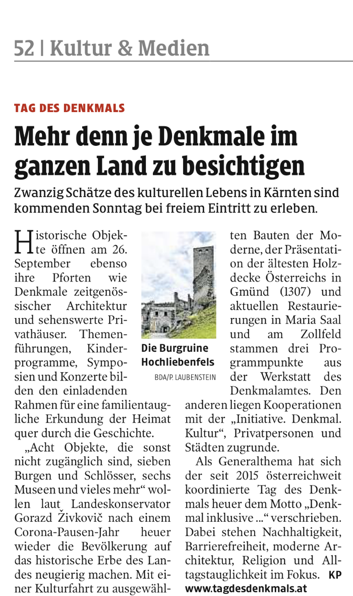 Kleine Zeitung: "Mehr denn je Denkmale im ganzen Land zu besichtigen"