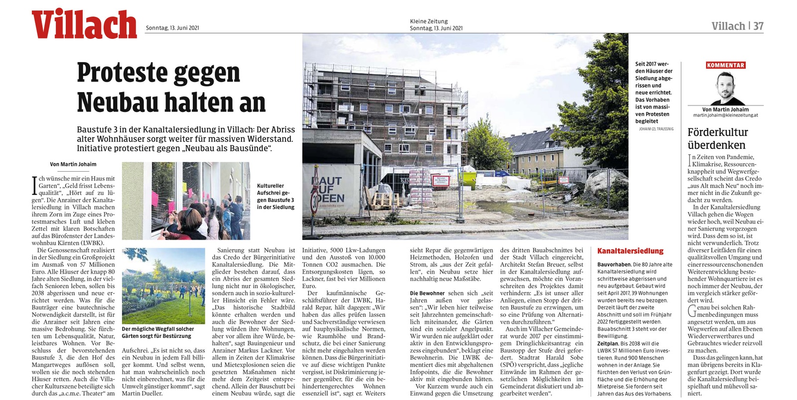 Kleine Zeitung: "Proteste gegen Neubau halten an"